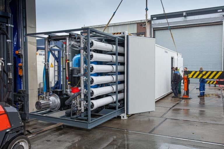 Worldwide, there is a growing demand for fresh water, often in remote locations without any facilities such as buildings. Hatenboer-Water has developed ContainRO, a containerized water treatment plant that fulfills this need. With ContainRO, seawater or brackish well water is converted into potable water, utilizing pre-filtration, Reverse Osmosis, and post-treatment (neutralization & chlorination).